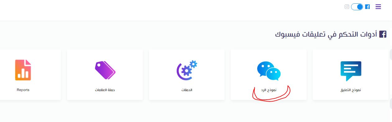 على الفور، ستظهر صفحة أدوات نمو التعليقات. تحتوي الصفحة على ثلاثة خيارات - نموذج التعليق ونموذج الرد و الحملات بالاضافة الى حملة العلامات والتقارير. في هذه الصفحة، يمكنك إنشاء حملة على فيسبوك أو انستغرام. إذا كنت تريد إنشاء حملة على فيسبوك، فحدد فيسبوك. من ناحية أخرى، إذا كنت ترغب في إنشاء حملة لانستغرام، فحدد انستغرام. دعنا الآن نرى كيفية إنشاء حملة أدوات نمو التعليقات على فيسبوك. لذلك، أولاً، حدد فيسبوك.