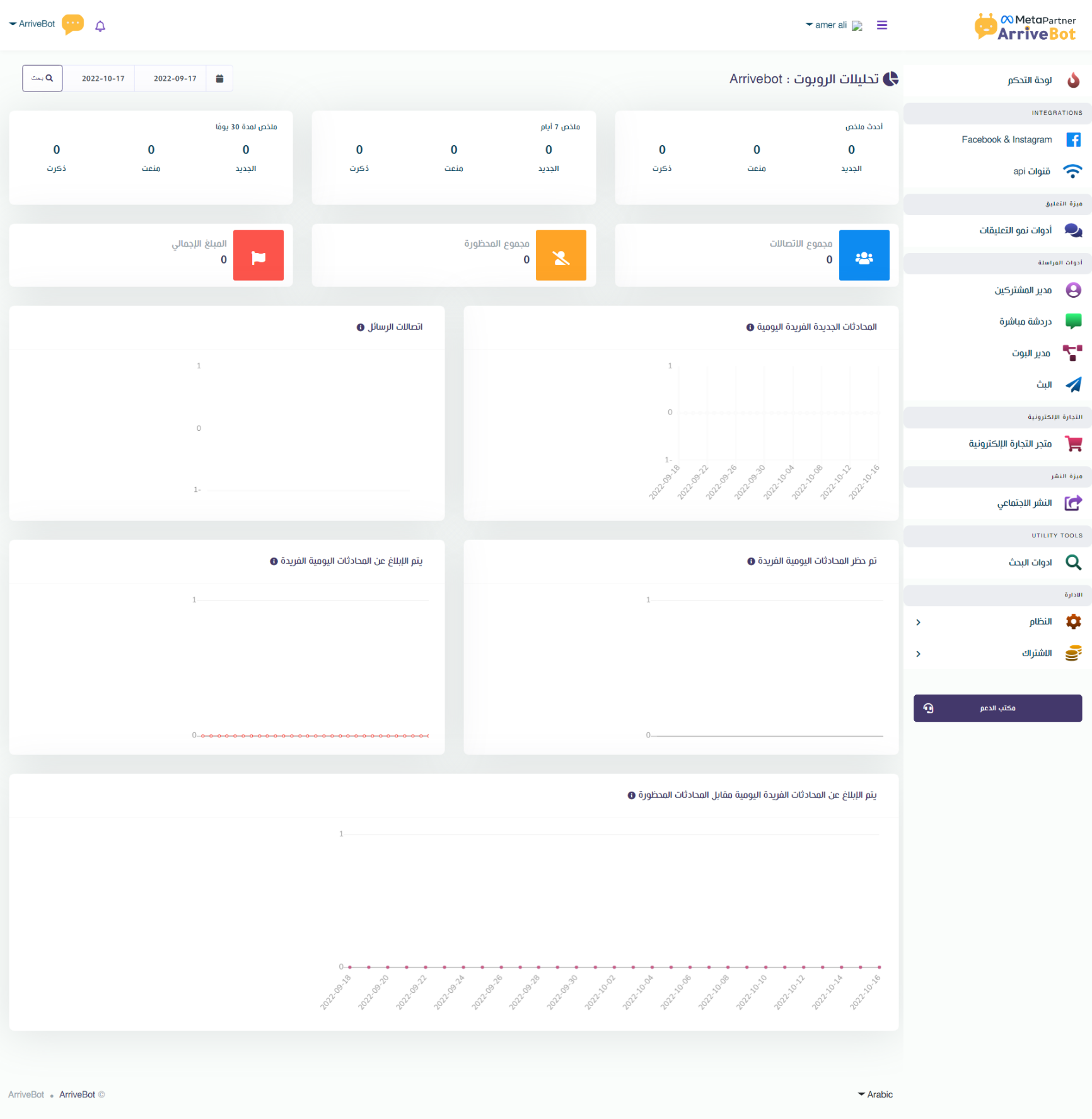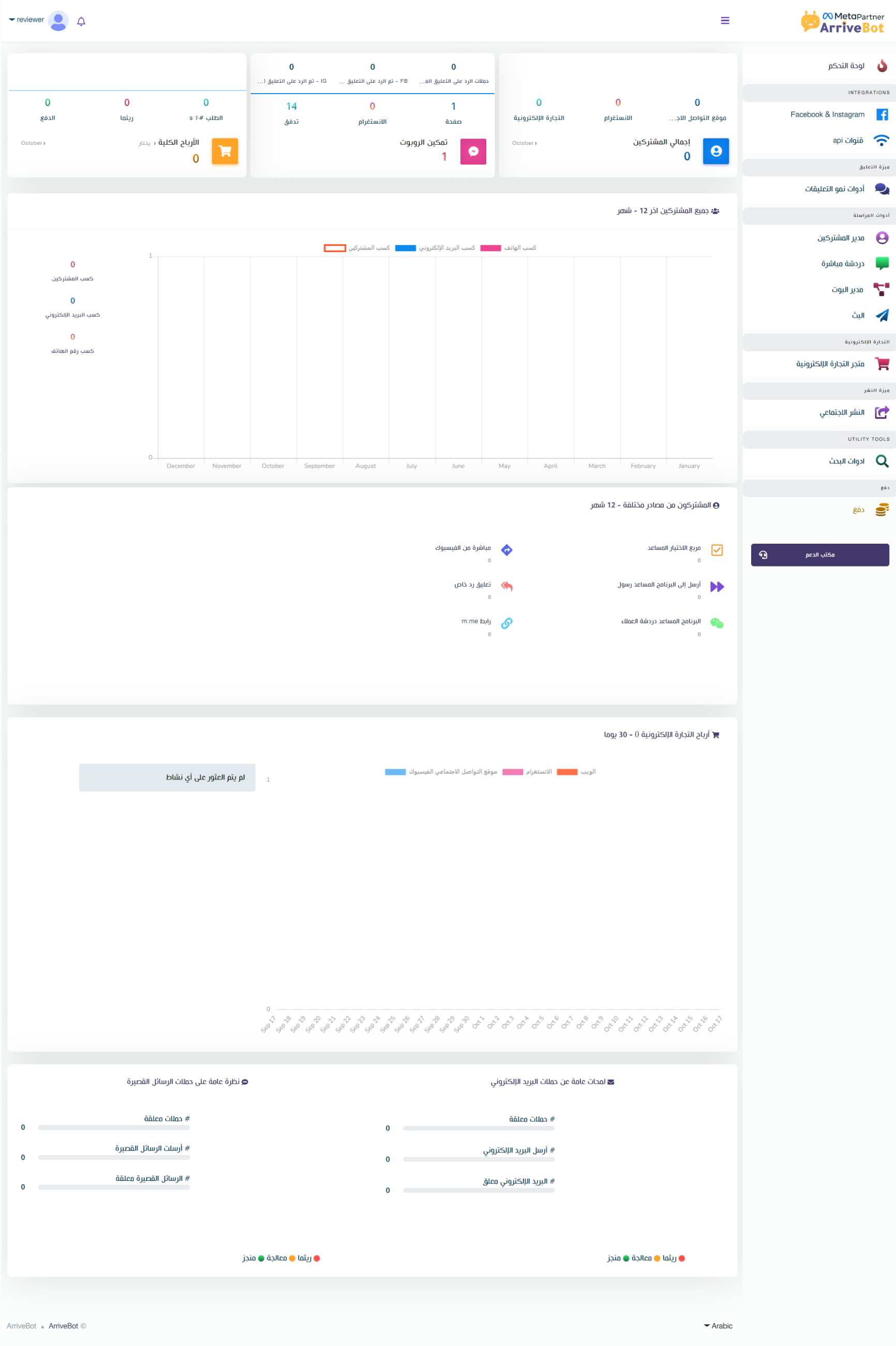 يحتوي arrivebot على لوحة تحكم دقيقة ومُنظمة بشكل صحيح تتيح للمستخدم استخدام ميزات التطبيق المختلفة بكفاءة. في كلمة واحدة، تم تصميم لوحة معلومات arrivebot بطريقة تمكن المستخدمين من تشغيل التطبيق بشكل مناسب. أيضًا، توفر لوحة المعلومات معلومات باستخدام التحليلات الرسومية.