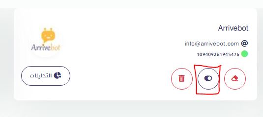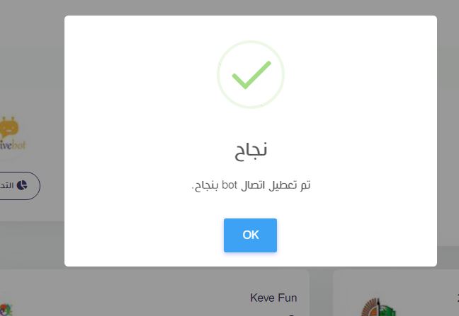 وستظهر رسالة نجاح العملية - تم تفعيل اتصال البوت بنجاح. بدلاً من زر التفعيل، سترى زرين آخرين - زر الممحاة وزر التعطيل.تعطيل اتصال البوت