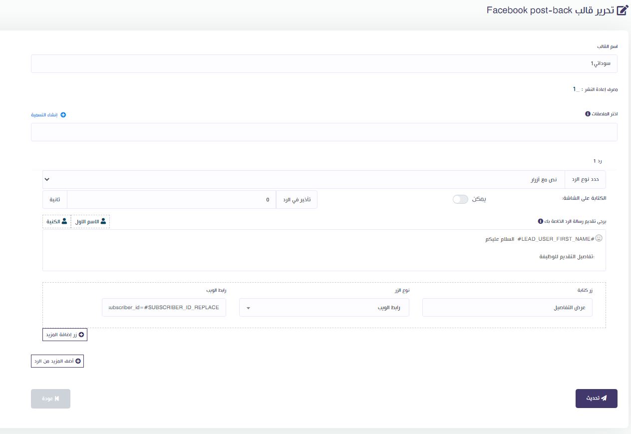 لحذف اتصال البوت وجميع الإعدادات، انقر فوق زر الممحاة. وستظهر رسالة نجاح العملية. بعد ذلك، بدلاً من زر الممحاة والتعطيل، سيظهر زر التفعيل مرة أخرى.حذف صفحة الفيسبوك