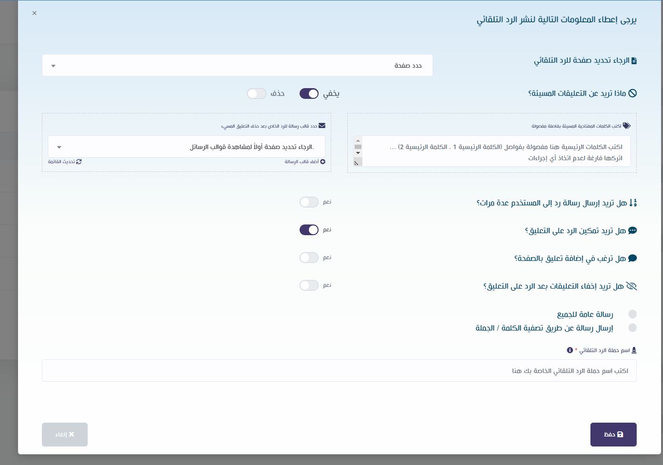 تعد أدوات نمو التعليقات ميزة رائعة في Arrivebot. ويمكنك بسهولة استخدام الميزة. ما عليك سوى قراءة المقالة واتباع الأوامر، وسيتم تعيين "أدوات نمو التعليقات" للعمل على الفور. بمجرد أن تبدأ الميزة في العمل، ستستمر بدون إشراف منك حتى تقوم بإيقافها. ستتحمل الميزة المسؤولية الكاملة عن التفاعل والتعامل مع عملائك القيمين عبر صفحة فيسبوك وحسابات انستغرام.