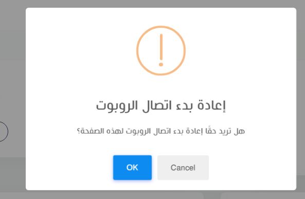 لإعادة تشغيل اتصال البوت، انقر فوق زر إعادة التشغيل. على الفور، سيظهر مربع حوار فيه زرين Cancel و OK. انقر فوق الزر "OK" وسيتم إعادة تشغيل البوت. وبدلاً من زر إعادة التشغيل، سيظهر زر التعطيل.حذف اتصال البوت
